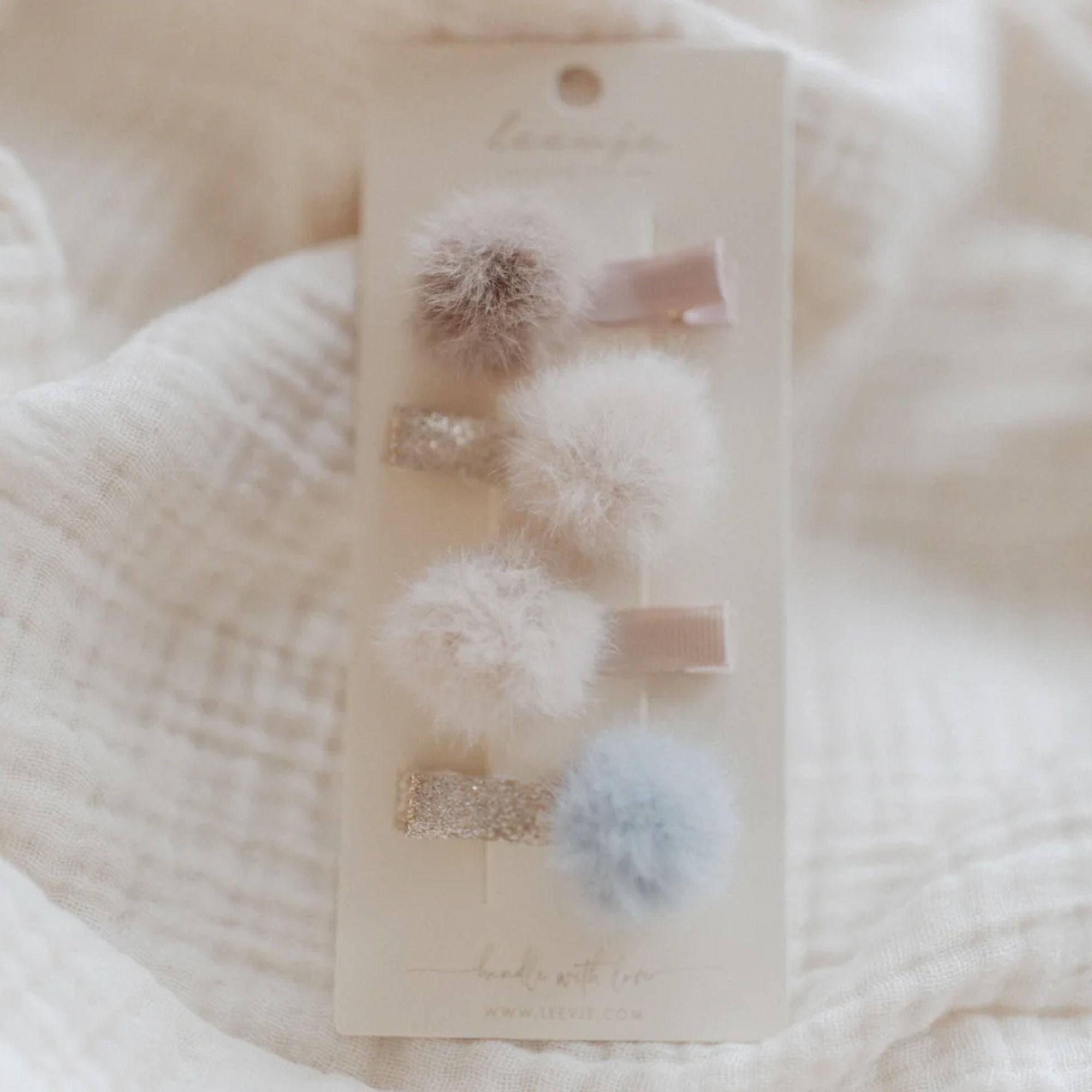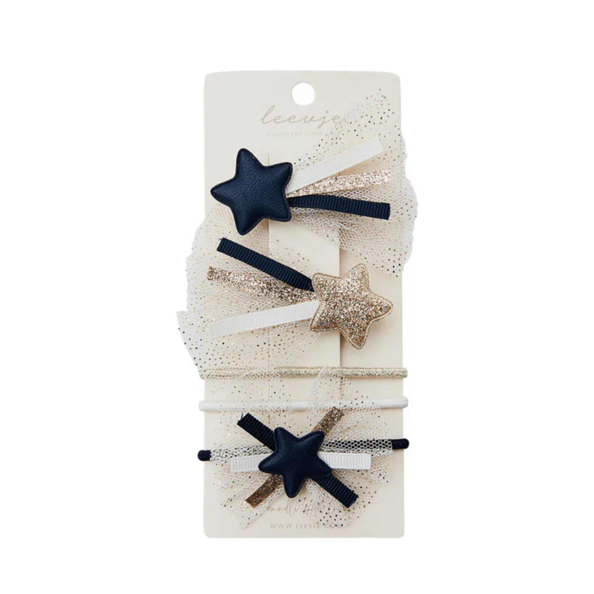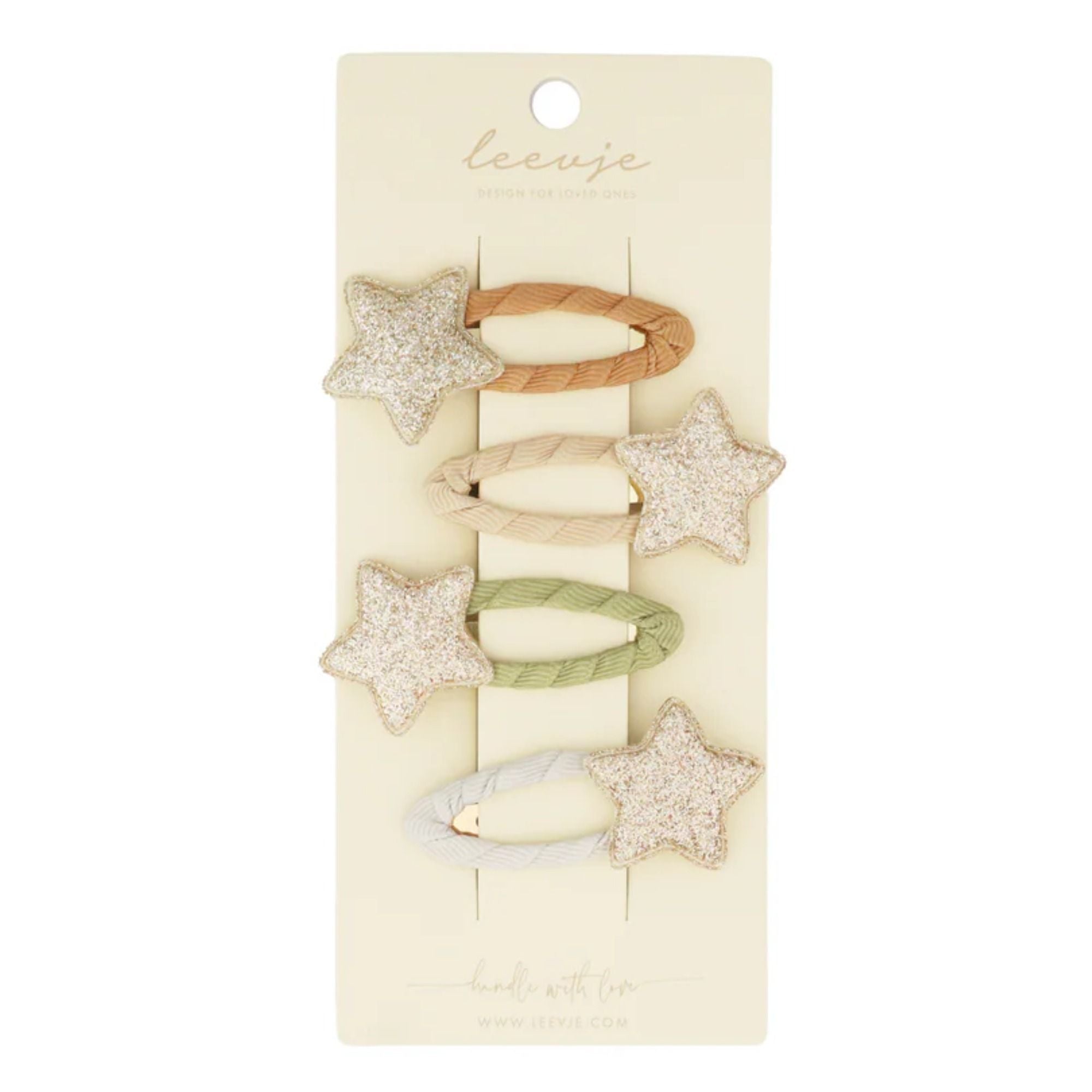 Diese süßen Haarspangen mit glitzernden und glänzenden Details lassen Kinderaugen strahlen. Durch die schlichten leevje-Farben passen sie toll zu jedem Outfit. Schöner Haarschmuck für die feierlichen Tag!