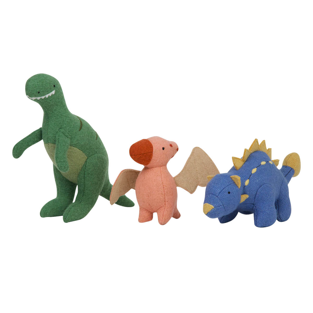 Komm und entdecke die Urzeittier- Freunde. Aus einer weichen Wollmischung sind sie handgefertigt hergestellt und mit Stickereien versehen. Sie haben die perfekte Größe für kleine Kinderhände und sind eine wunderbare Anregung für ein stundenlanges, fantasievolles Spiel. Die Tiere können von selbst aufrecht stehen.