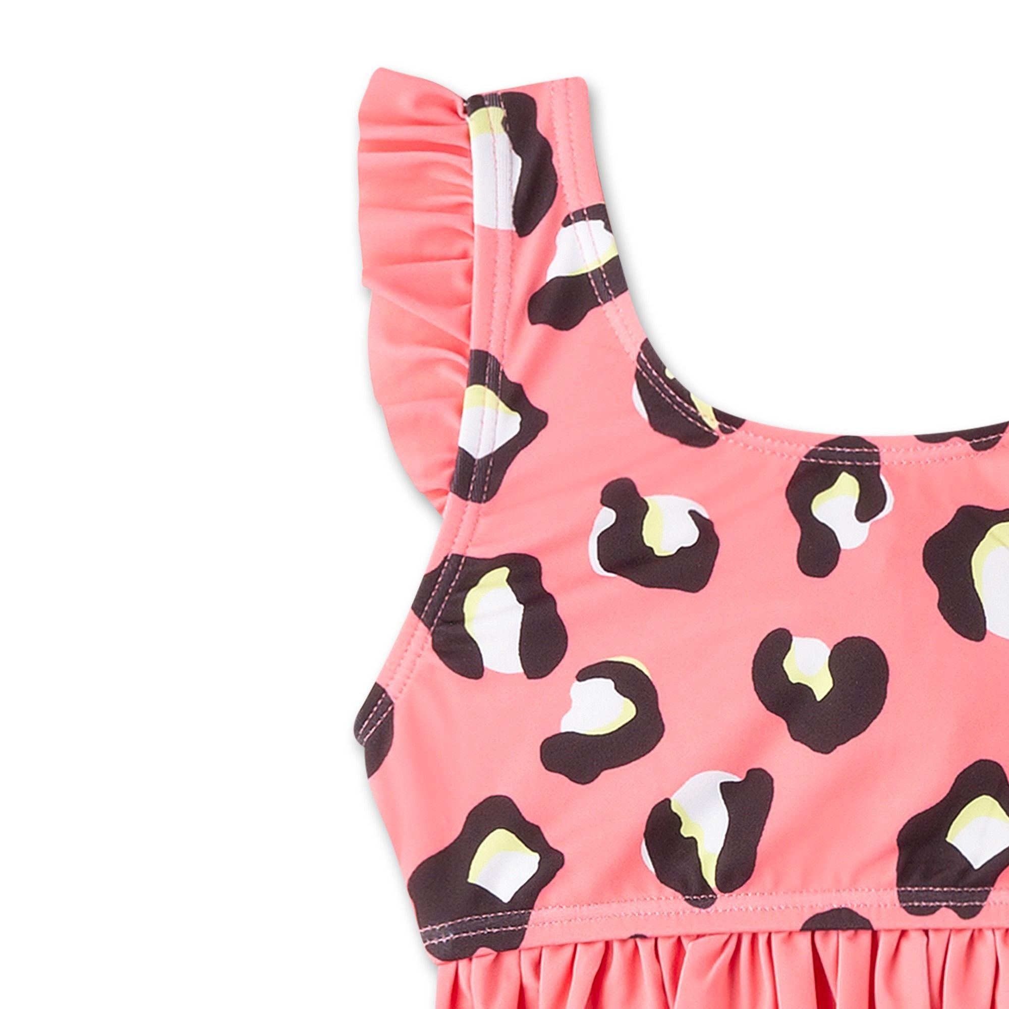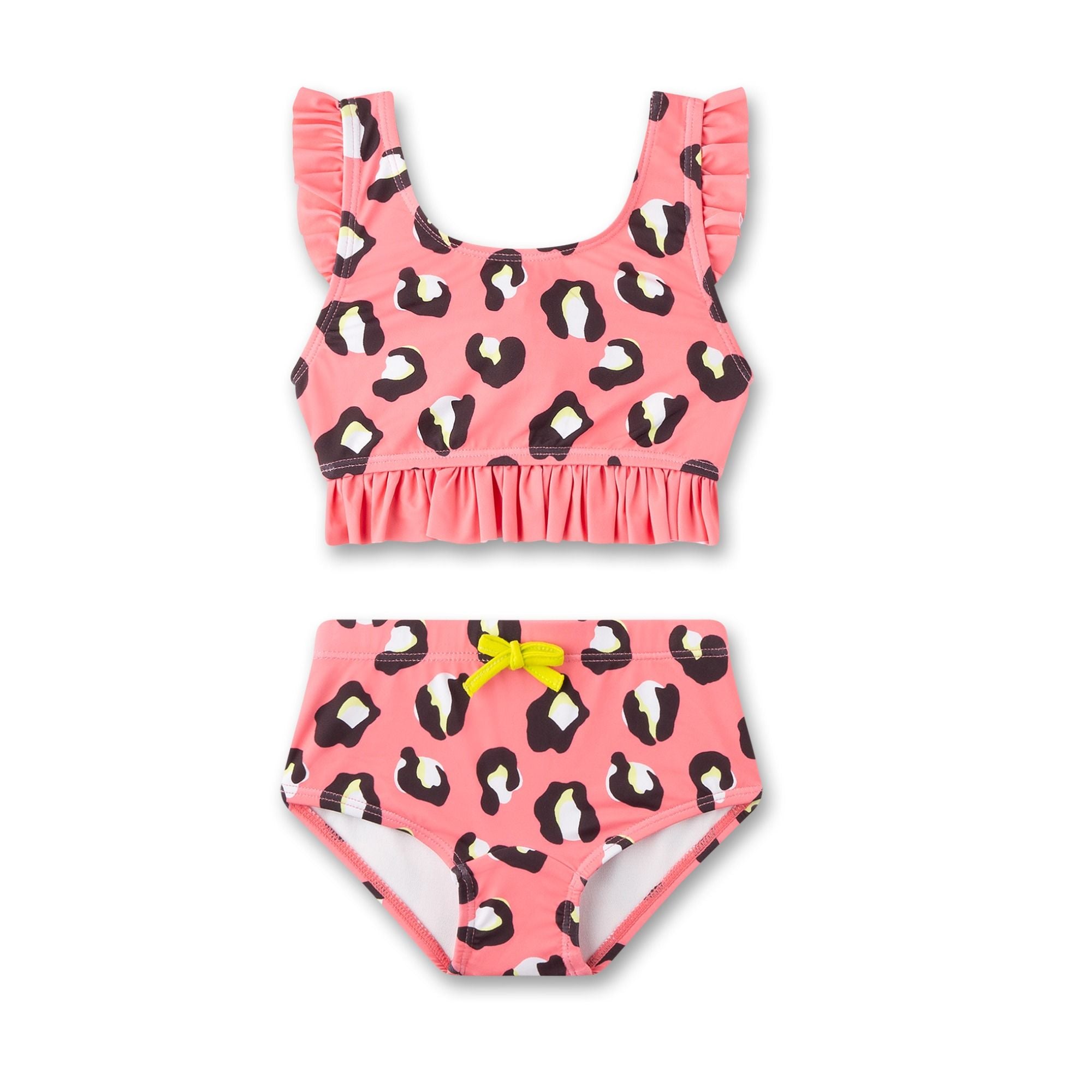 Dieser niedliche Bikini von Sanetta bringt Farbe und Spaß in den Sommer! Das weiche Material aus recyceltem Polyester sorgt für angenehmen Tragekomfort, während das auffällige Leopardenmuster in sanftem Pink mit kontrastierenden Details für einen trendigen Look sorgt. Die Rüschen an den Trägern und am Saum des Oberteils verleihen dem Set eine extra verspielte Note. Dank des integrierten UV-Schutzes 50+ ist die empfindliche Kinderhaut bestens vor der Sonne geschützt.