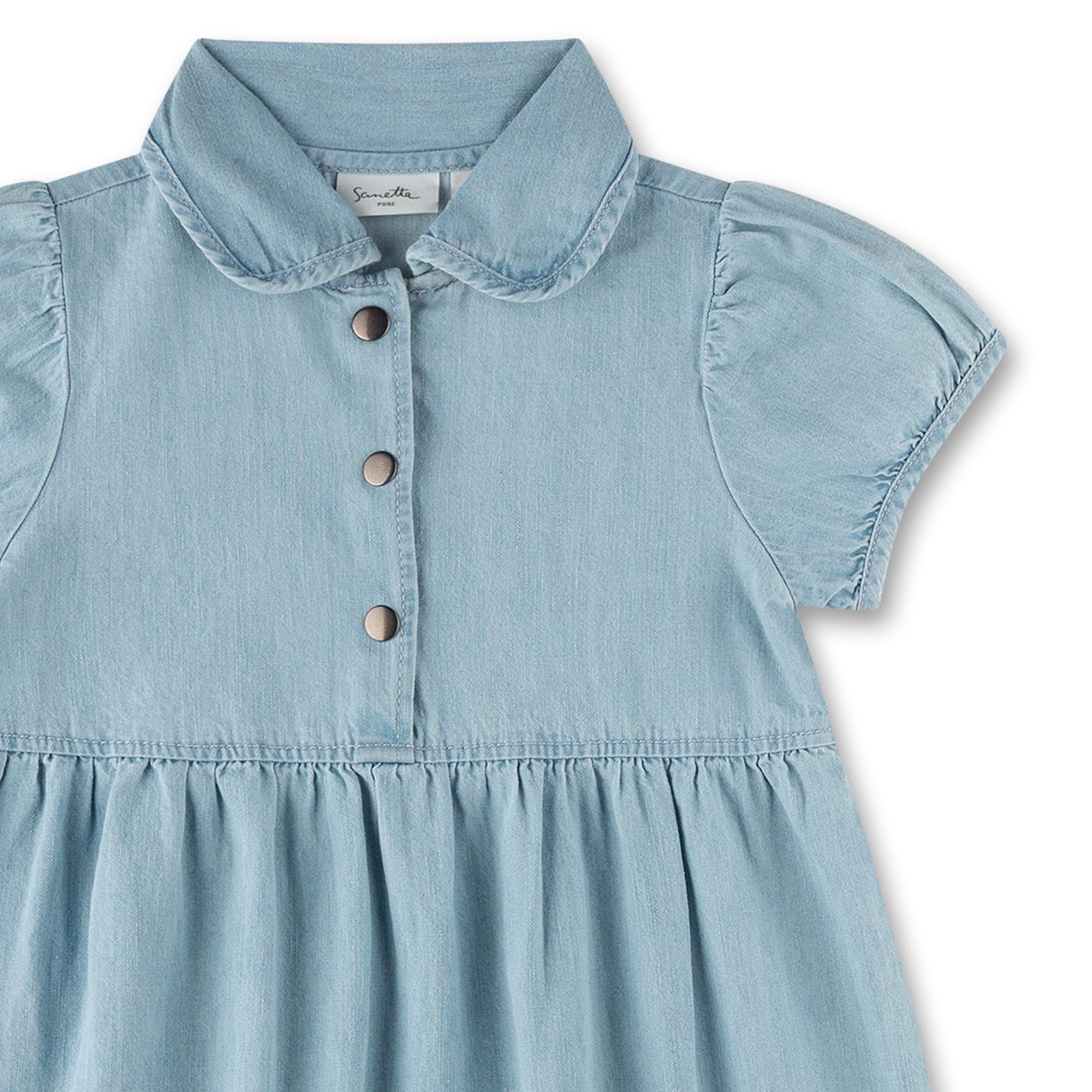 Dieses zauberhafte Jeanskleid von Sanetta ist ein echter Klassiker für jeden Anlass. Das weiche Baumwollmaterial sorgt für ein angenehmes Tragegefühl, während die liebevollen Details wie die zarten Puffärmel und die hübsche Knopfleiste das Kleid zu einem besonderen Hingucker machen.