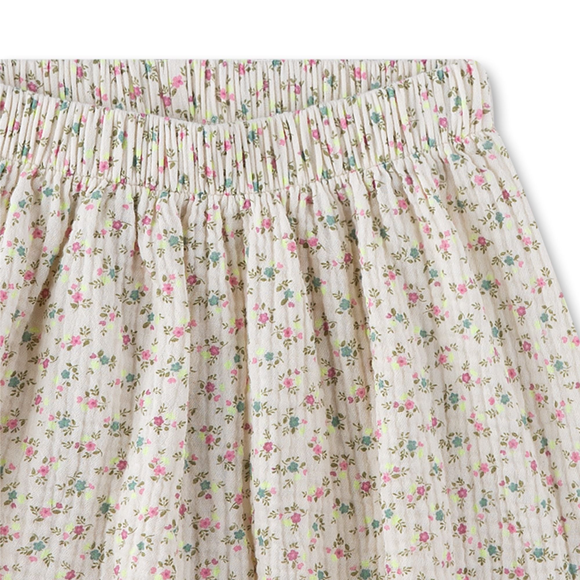Dieser cremefarbene Kinder-Rock ist ein stilvoller Begleiter für kleine Sommerabenteurerinnen und überzeugt mit einem fröhlichen Blumen-All-Over in Grün, Gelb und Rosa. Aus Bio-Baumwolle gefertigt, bietet er einen besonders weichen und angenehmen Tragekomfort – ideal für zarte Kinderhaut. Der elastische Taillenbund sorgt für eine bequeme Passform und erleichtert das An- und Ausziehen.