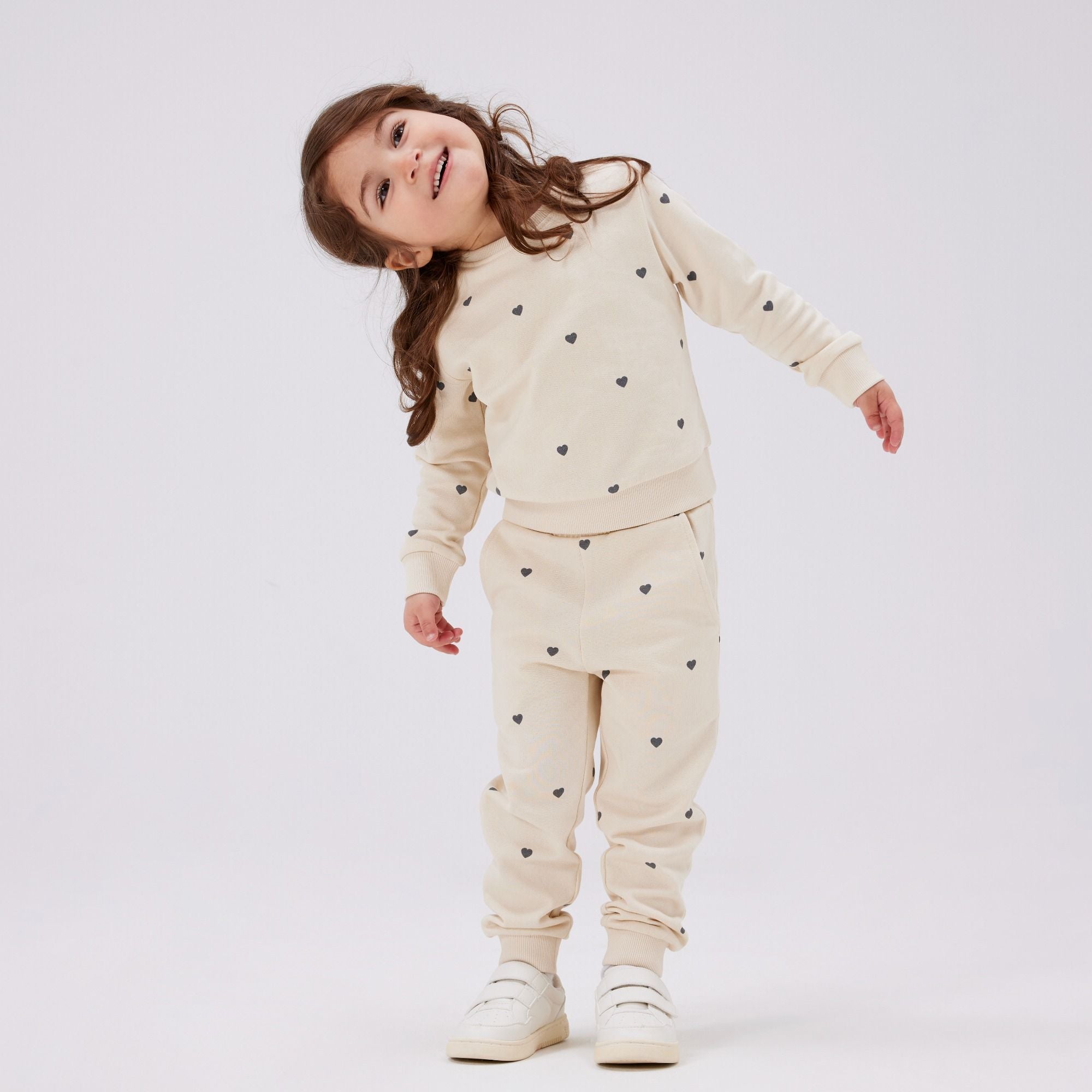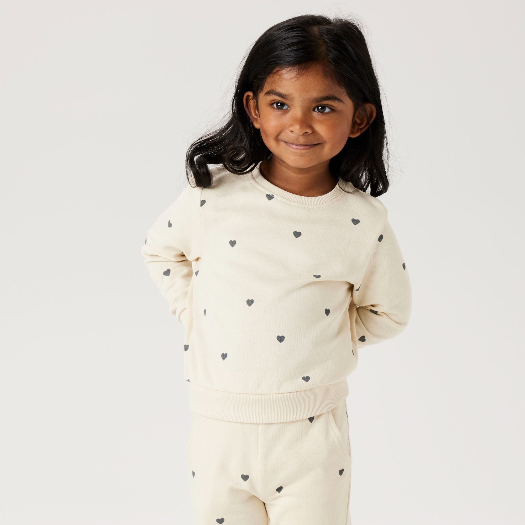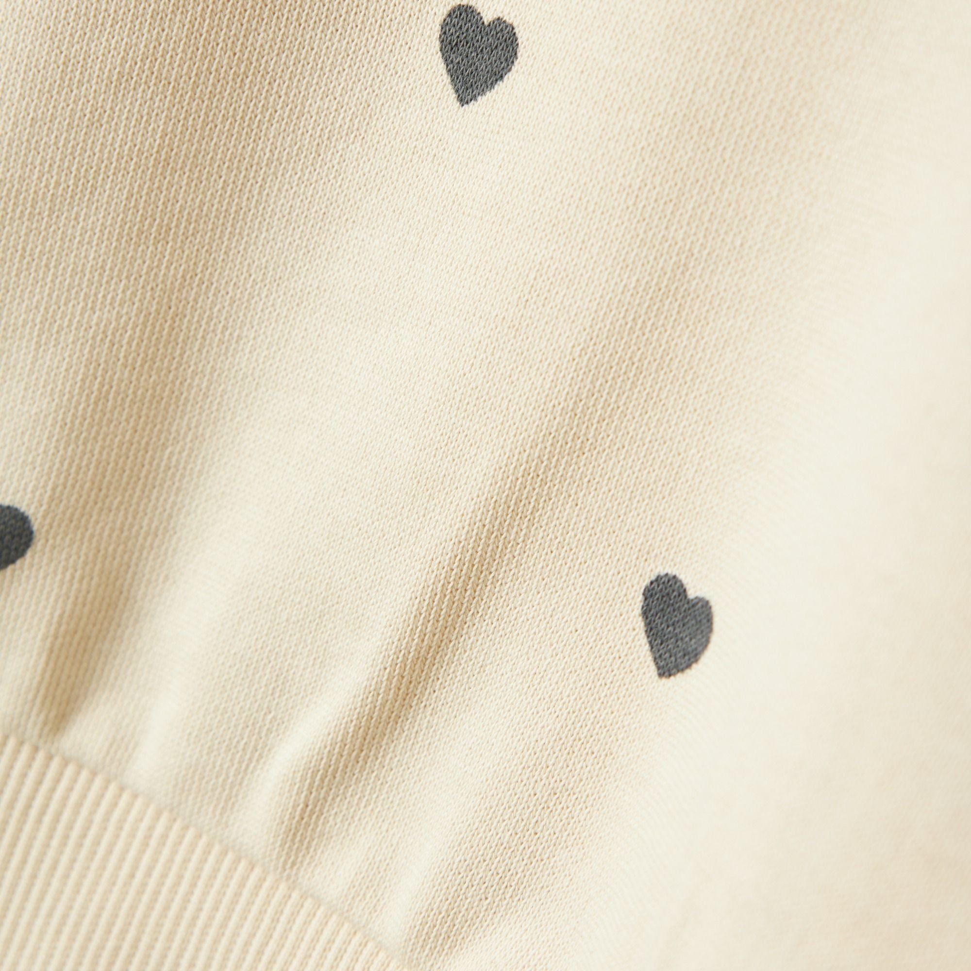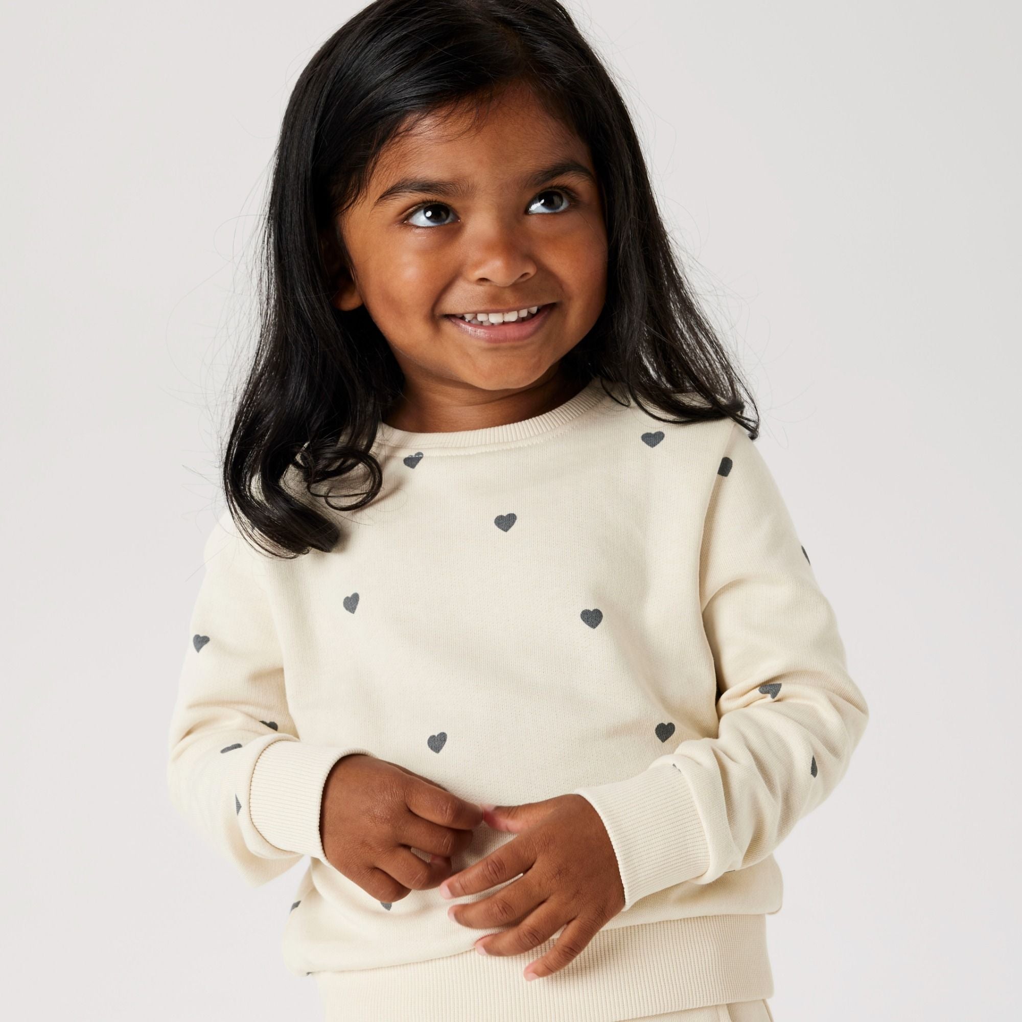 Dieses gemütliche Kinder Sweatshirt aus hochwertiger Baumwolle bietet sowohl Komfort als auch Stil. Das süße Herzchen All-Over-Print sorgt für einen verspielten Look, der jedes Outfit aufpeppt. Die Ripp-Bündchen an den Ärmelenden und am Saum sorgen für eine perfekte Passform und zusätzlichen Tragekomfort. Mit dem Regular Fit sitzt das Sweatshirt ideal und bietet genügend Bewegungsfreiheit für aktive Kinder.