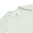 Der langarm Baby Body besteht aus Rippstrickware mit Lyocell, er eignet sich für Tag und Nacht. Die Druckknöpfe im Schritt erleichtern das Windelwechseln, der runde Halsausschnitt das An- und Ausziehen.