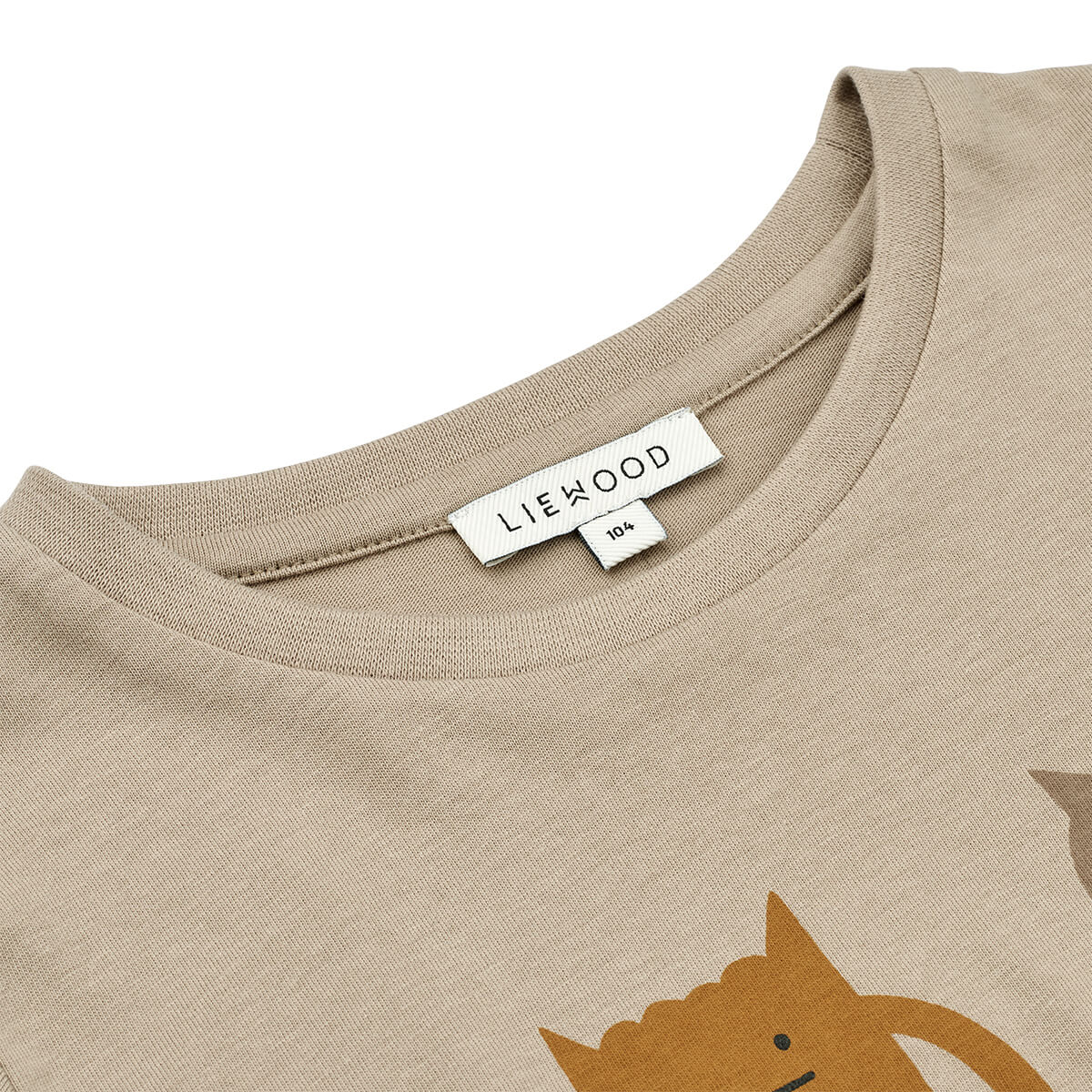 Das langärmelige T-Shirt ist zeitlos und ein tolles, lässiges Outfit für jeden Tag. Es besteht aus 100% -Bio-Baumwolle und ist dadurch wunderbar weich und angenehm zu tragen. Das atmungsaktive Shirt kann allein oder an kälteren Tagen als untere Kleidungsschicht getragen werden. Es besitzt einen Rundhalsausschnitt und ein dezentes Liewood-Monogramm am Saum. Dank des niedlichen Aufdrucks auf der Vorderseite wird das schlichte Basic-Oberteil zu einem echten Hingucker.