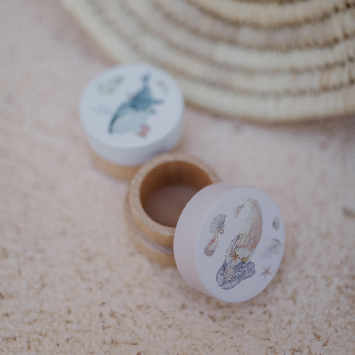 Unsere kleine Milchzahndose ist ideal zur Aufbewahrung von kleinen Schmuckstücken oder den Milchzähnen Deiner Kleinen. Sie lässt sich durch eine kleine Drehbewegung gut öffnen und schließen und passt dank der handgezeichneten Illustrationen perfekt ins Kinderzimmer.