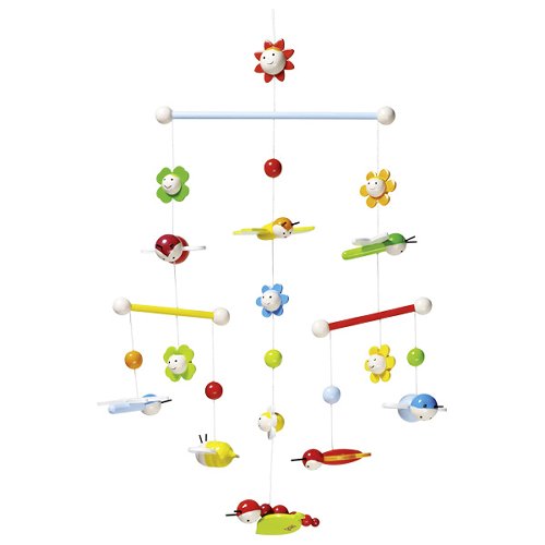 Das Mobile ist aus 100% Holz mit verschiedenen Blumen, Bienen, Schmetterlingen und mehr. Es ist der perfekte Einschlafhelfer für Ihr Kind.