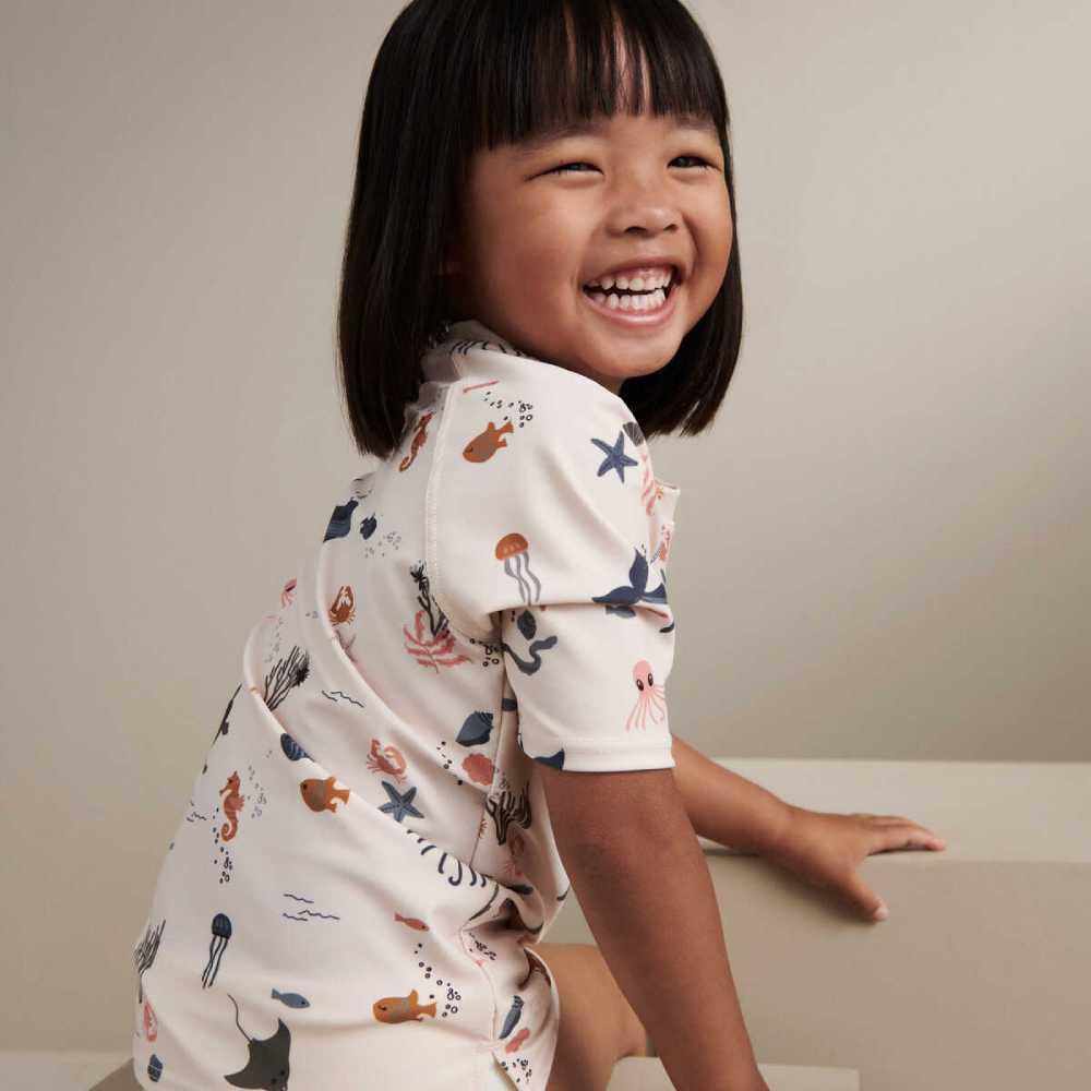 Das aus recyceltem Polyester gefertigte Noah Schwimm-T-Shirt ist perfekt für einen Tag am Strand - kombinieren es einfach mit einer LIEWOOD-Badehose und einem Sonnenhut, damit dein Kind rundum geschützt ist.