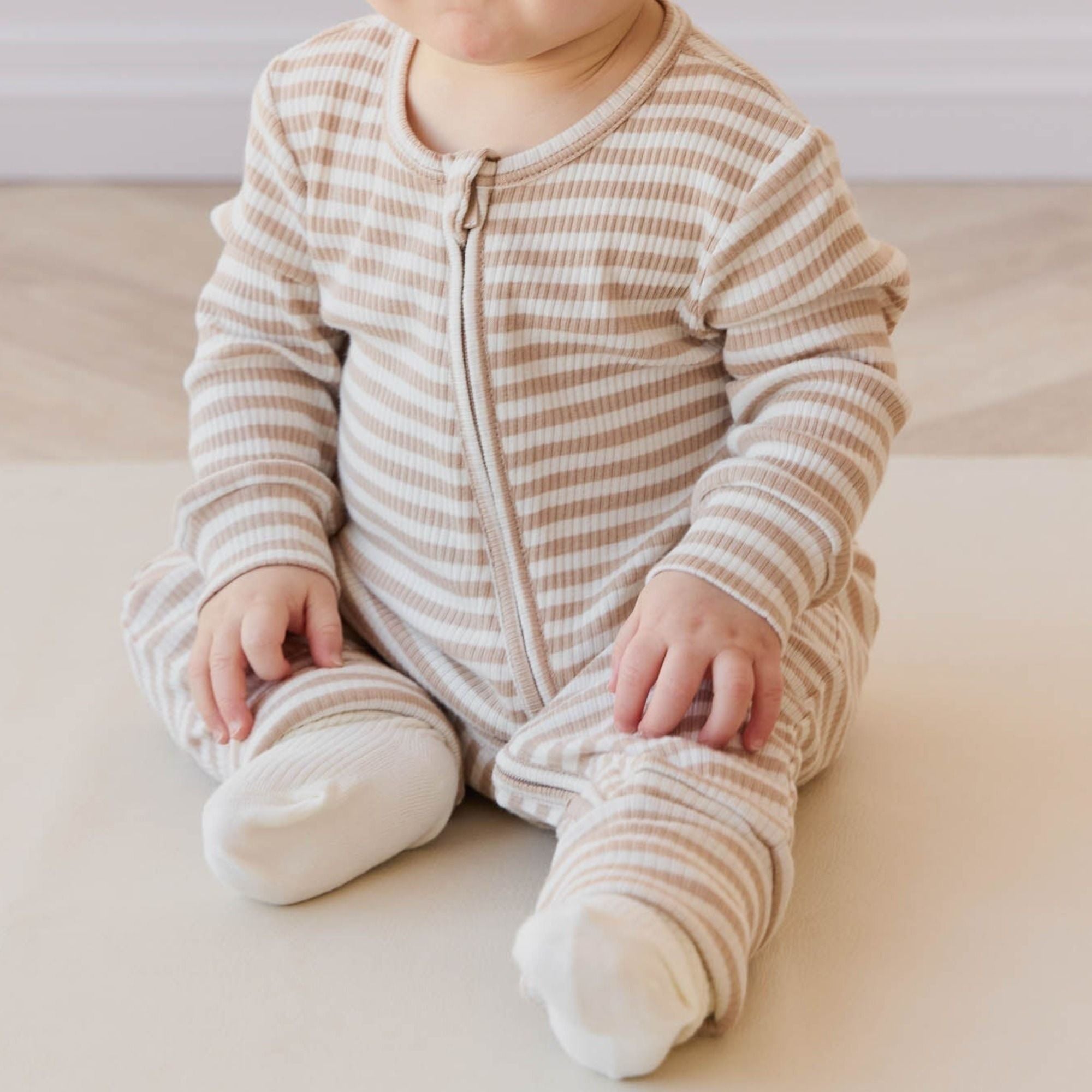 Dieser Baby-Strampler aus hochwertiger Bio-Baumwolle und Modal sorgt für optimalen Tragekomfort. Das gestreifte Design verleiht dem Strampler eine süße, klassische Optik, während die Ripp-Optik zusätzlich für eine angenehme Dehnbarkeit sorgt. Der durchgehende Reißverschluss ermöglicht ein einfaches An- und Ausziehen, was besonders praktisch bei Wickelpausen ist.