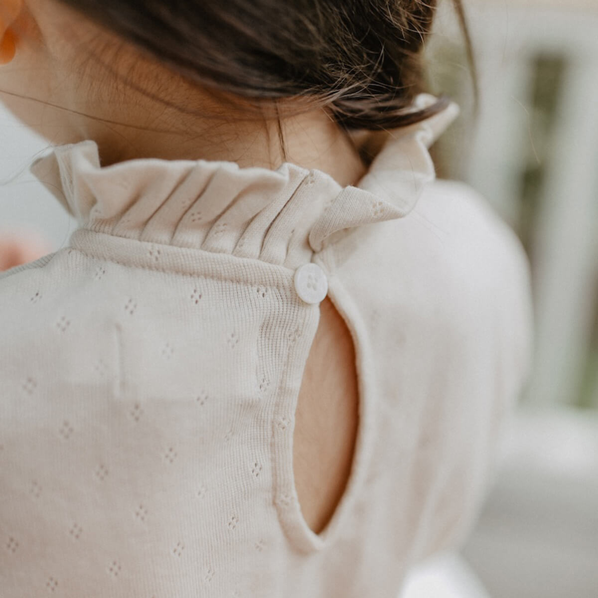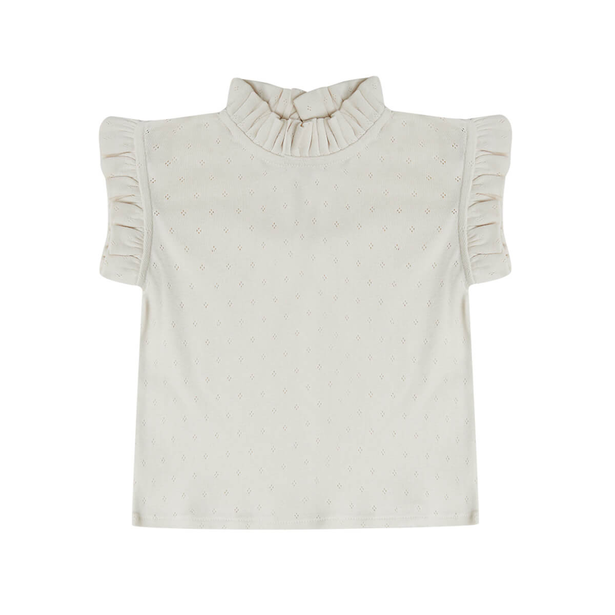 Pointelle Top mit Rüschenstehkragen aus 100% Bio-Baumwolle von Leevje