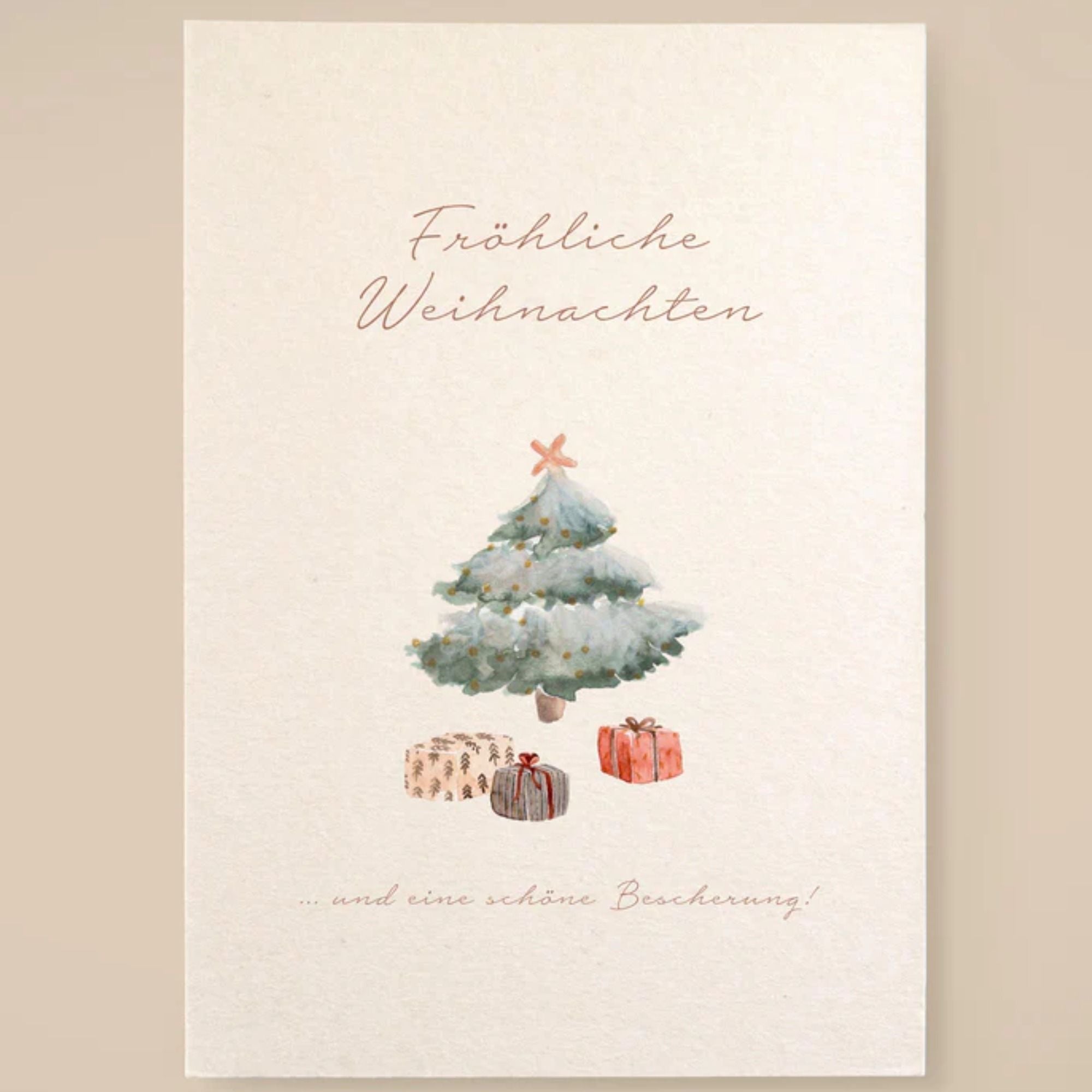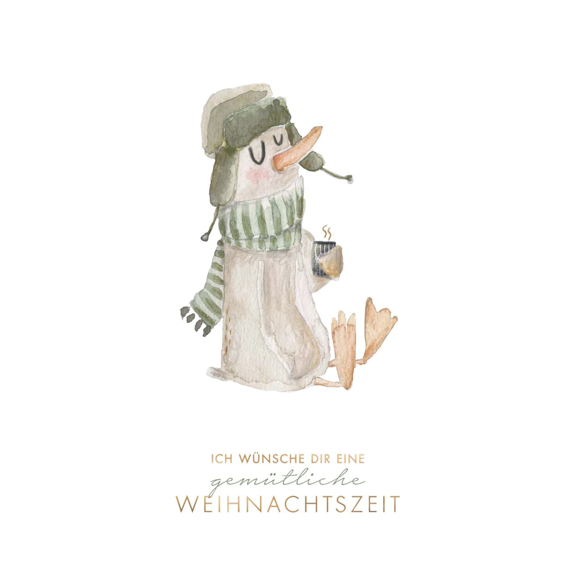 Die Postkarte ist aus Tintoretto Gesso Papier und fällt besonders durch ihre liebevollen handgemalten Illustrationen von Weihnachtsmotiven auf.