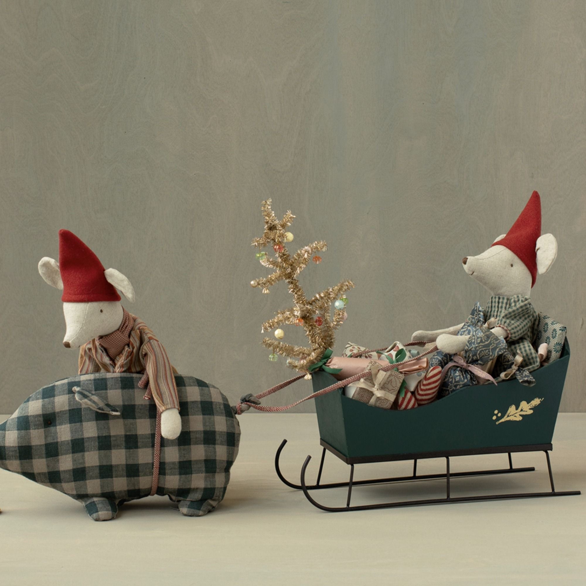 Dieser Schlitten ist ein bezauberndes Spielzeug für kleine Kinder und regt zu kreativen Winterabenteuern an. Ideal für das Spiel mit Puppen und Mäusen, die eine warme und bequeme Fahrt genießen sollen.