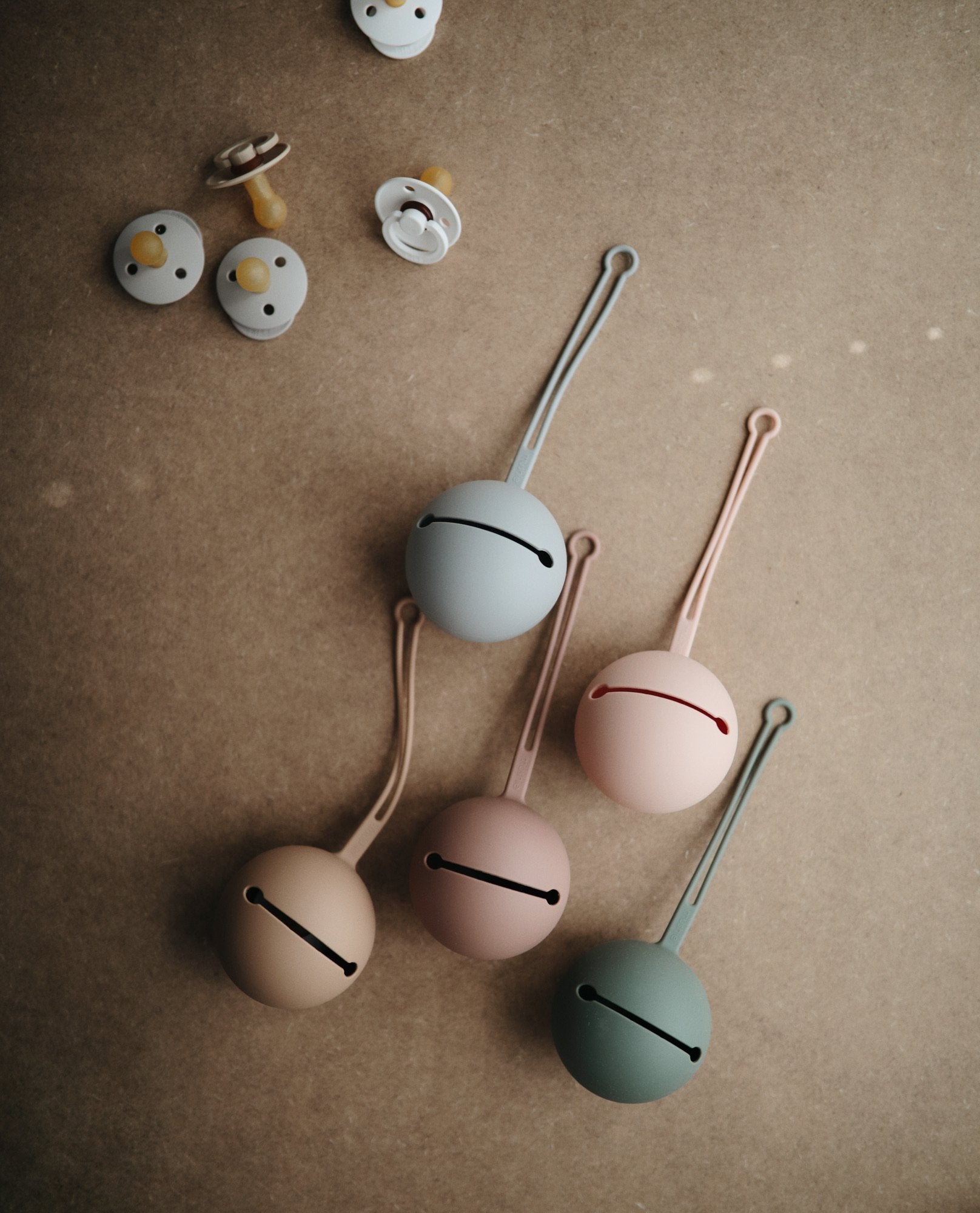 Mit einem stabilen Riemen und Platz für bis zu drei Schnuller kann dieses Schnuller-Case einfach an einer Wickeltasche oder an einem Kinderwagen befestigt werden, sodass die Schnuller immer in Reichweite sind. Das in Schweden entworfene Silikon-Case in Lebensmittelqualität & in zeitlosen Farben ist für eine einfache Reinigung spülmaschinenfest.