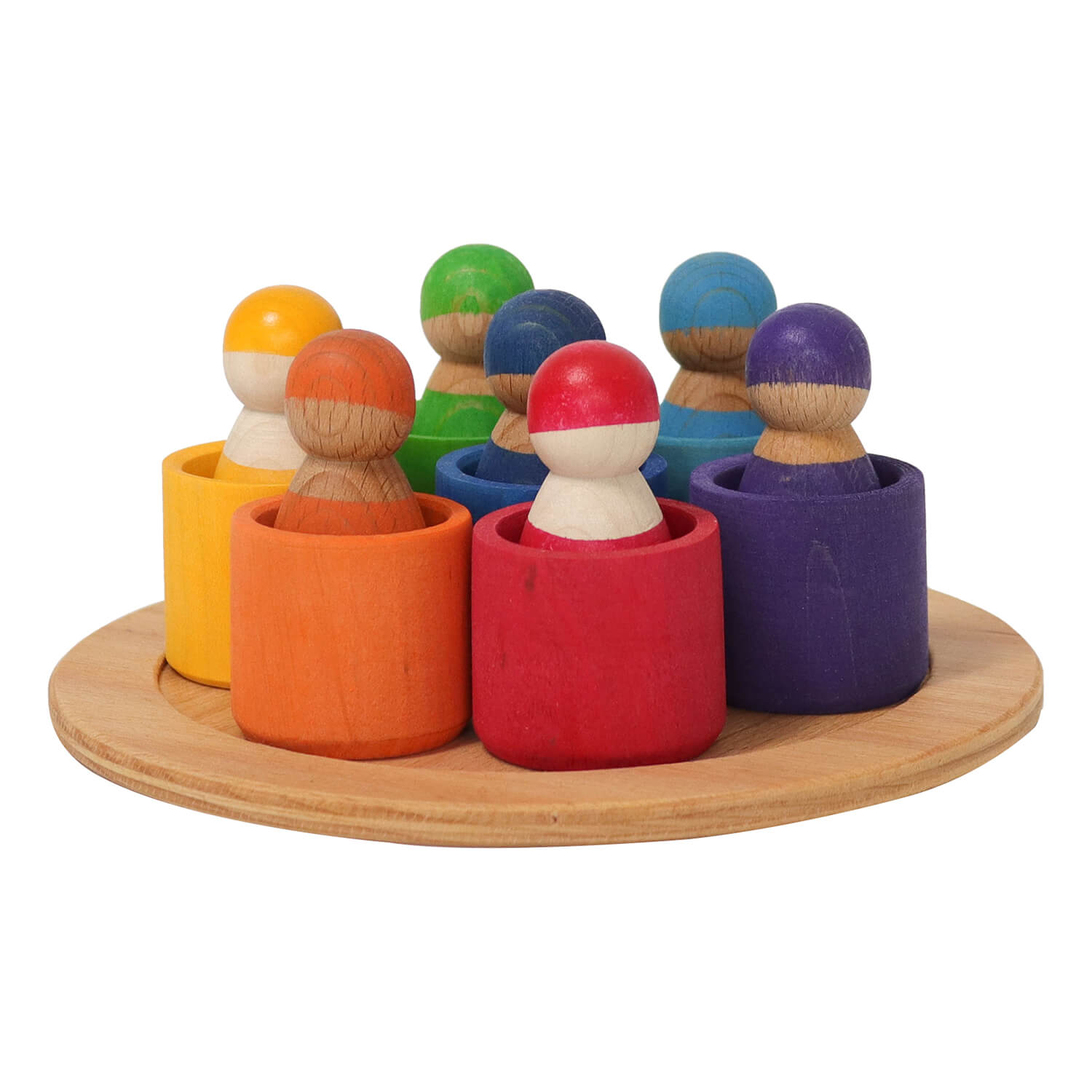 Dieser Spielzeugklassiker begleitet Ihr Kind für lange Zeit, denn es finden sich immer wieder neue Spielmöglichkeiten: Schon die Allerkleinsten lieben es, die 7 Freunde aus ihren Holzschälchen zu nehmen, die Schälchen umzudrehen, aufeinanderzustapeln und die Männchen wieder in die Holzschälchen zu stecken … wieder und wieder, denn genau darin liegt der Zauber des Spielens: Fähigkeiten und Fertigkeiten neu entdecken und die Dinge wieder und wieder zu tun, bis sie sich gefestigt haben. Irgendwann können die Freunde den farblich passenden Schälchen zugeordnet werden, die Schälchen finden Verwendung im Kaufladen oder dienen als kleine Teetassen …