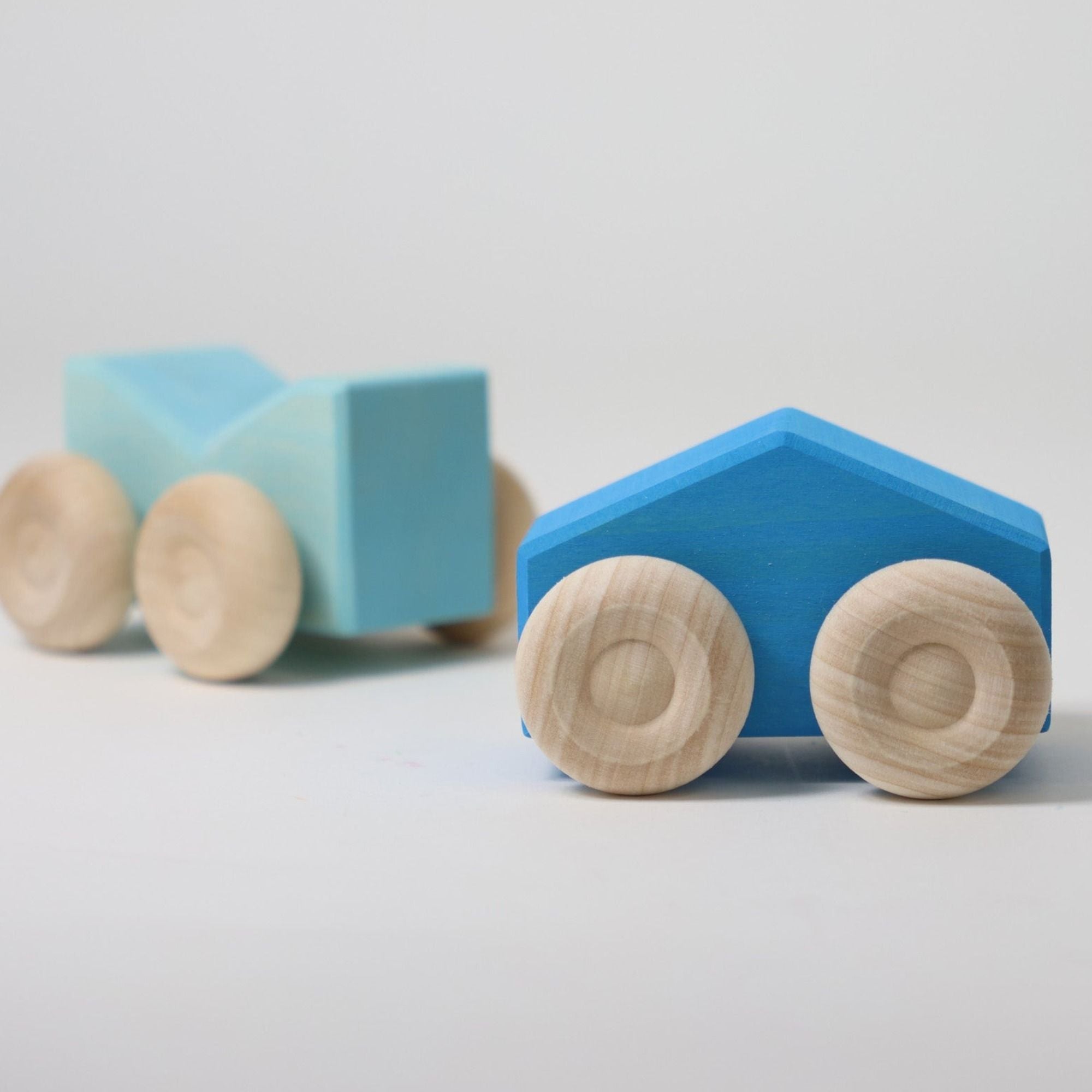 Gefertigt aus hochwertigem Holz und mit robusten Rädern ausgestattet, sind die Autos langlebige Begleiter, die Kreativität und motorische Fähigkeiten gleichermaßen fördern.