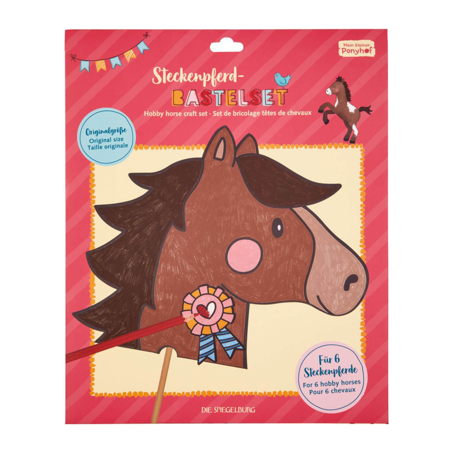 Mein kleiner Ponyhof: Das Steckenpferd-Bastelset von Die Spiegelburg ist das ideale Kreativset für kleine Pferdefreunde. Das umfangreiche DIY-Set enthält alles, was Kinder brauchen, um sechs eigene Steckenpferde zu gestalten. Im Set befinden sich sechs vorgestanzte Pferde, sechs farbenfrohe Kokarden, sechs stabile Holzstäbe sowie 60 transparente Klebepunkte – so kann es direkt losgehen! Die Ponys lassen sich individuell ausmalen und gestalten, eine zauberhafte Beschäftigungsidee für Zuhause oder den nächsten Kindergeburtstag. Mit einer Verpackungsgröße von etwa 31 x 38 cm ist das Set handlich und lässt sich problemlos verstauen. Ein schönes Geschenk für kreative Pferdefreunde.