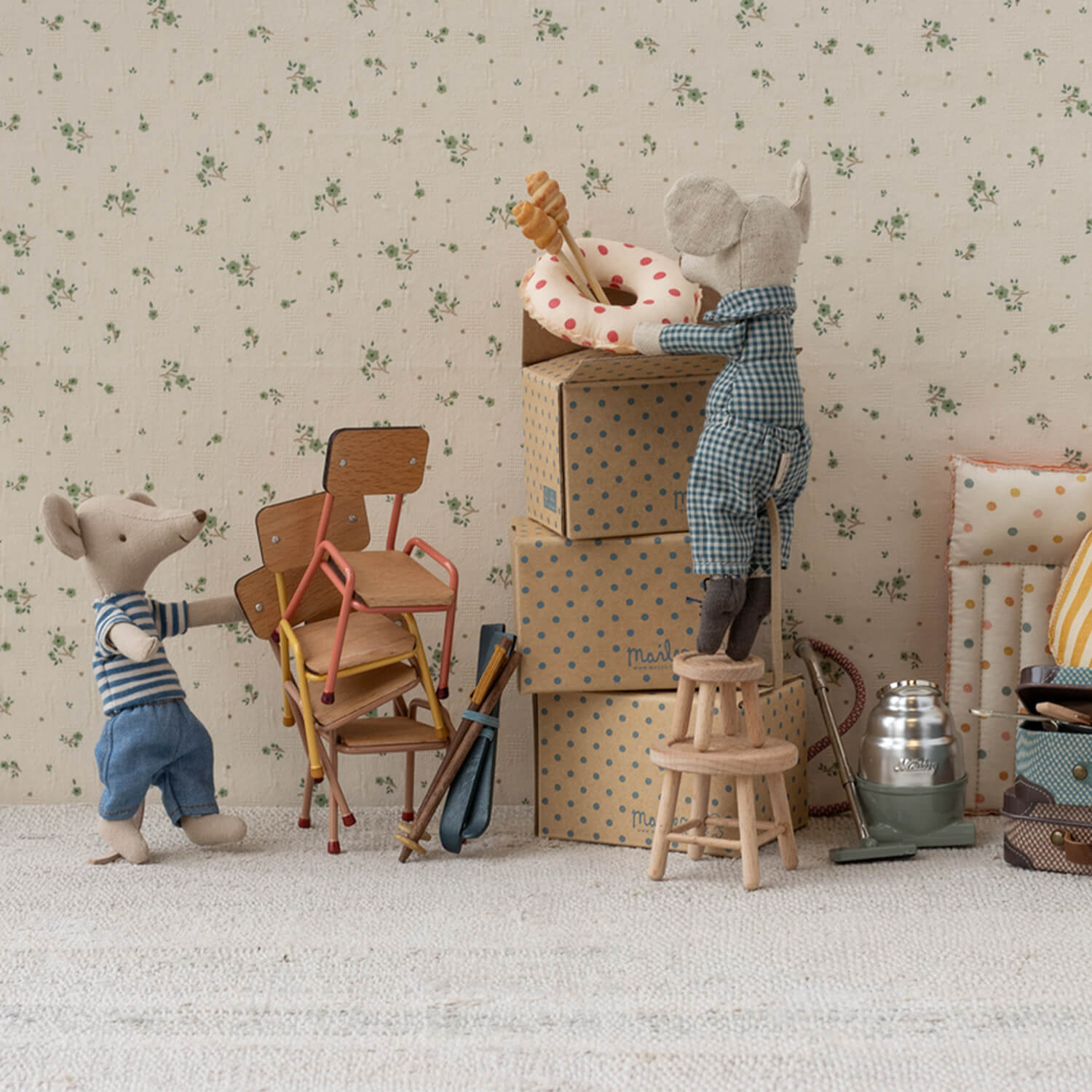 In dieser Welt, in der es keine Zeit gibt, werden wunderschöne Accessoires und Geschichten gesammelt und mit der Familie und Freunden über Generationen geteilt. In einer chaotischen Welt, in der man ständig mit Problem konfrontiert wird ist Maileg eine Welt, in der Mäuse in Streichholzschachteln schlafen und Prinzessinnen Kaffeekränzchen halten. Es ist eine Welt in der Katzen und Mäuse Freunde sind und Abenteuer bei einem schönen Waldspaziergang passieren. Unsere Welt hat Platz für Kindheitsfantasien und Spiel – dies ist eine Welt die wir schätzen. Maileg ist eine Marke mit charmantem und dänischem Designspielzeug, kreiert um der Fantasie ihrer Kinder freien Lauf zu lassen. Die Produkte wecken die Märchenlaune und helfen den Kindern die einfachen Wunder der Vorstellungskraft zu entdecken. Maileg ist beliebt für die herzerwärmenden Persönlichkeiten der Charaktere, denn in jedem kleinen Detail kann man den Charm und die Freude am Spielen entdecken.