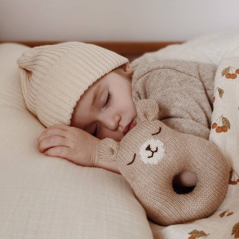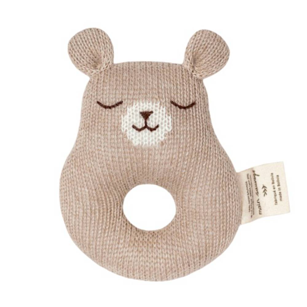 Unser Teddy-Rassel begeistert die Kleinen mit seinem schlichten und niedlichen Design. Babys werden die unglaublich weichen Ohren und den sanften Klang der kleinen Glocke lieben. Diese Rassel wird aus reiner Baby-Alpakawolle hergestellt, die antibakteriell ist und sich perfekt für empfindliche Haut eignet.