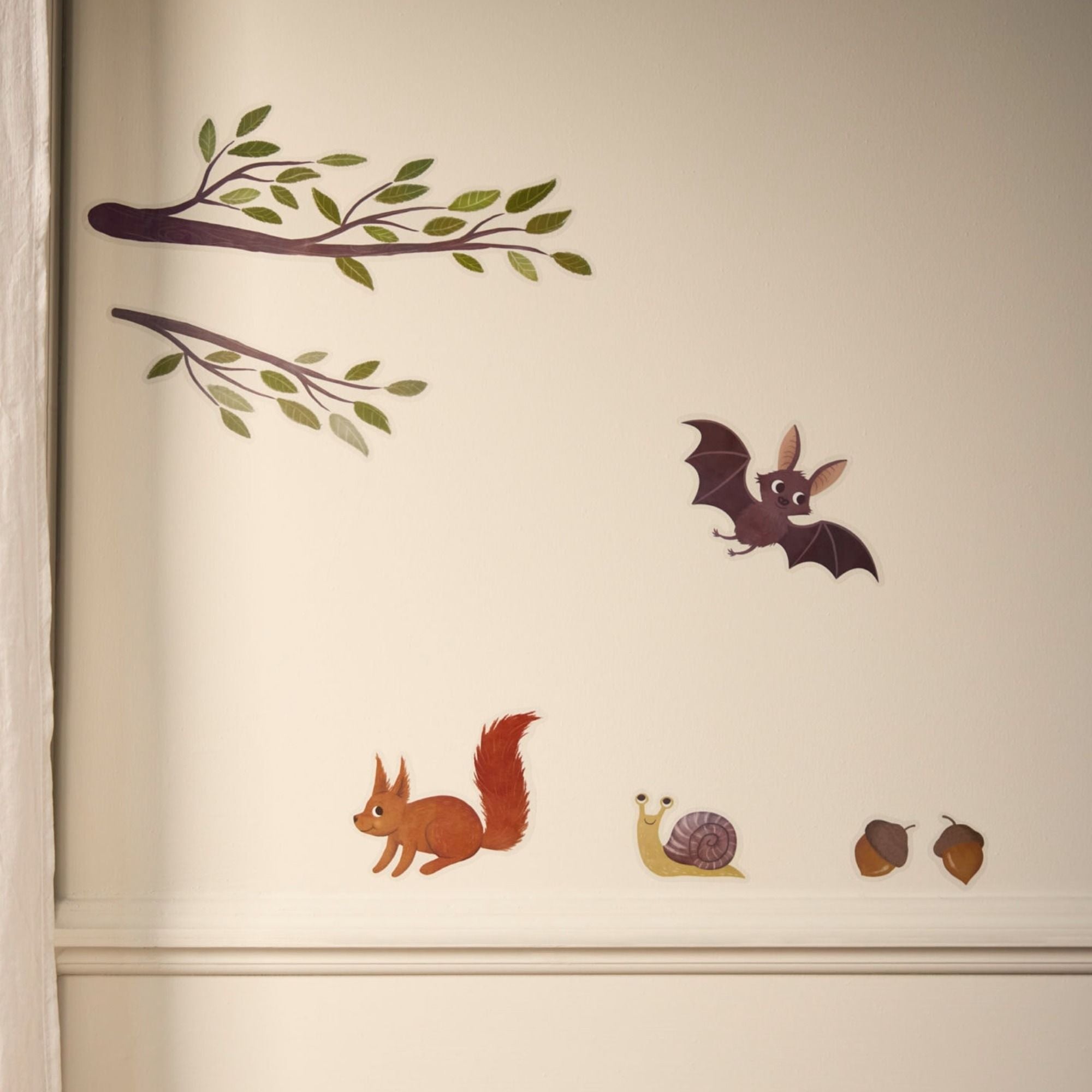 Ein Hauch von Magie fürs Kinderzimmer. Die Wandaufkleber verwandeln jeden Raum in eine kleine Fantasiewelt, in der Fuchs, Eule, Maus und Schnecke zum Leben erwachen.