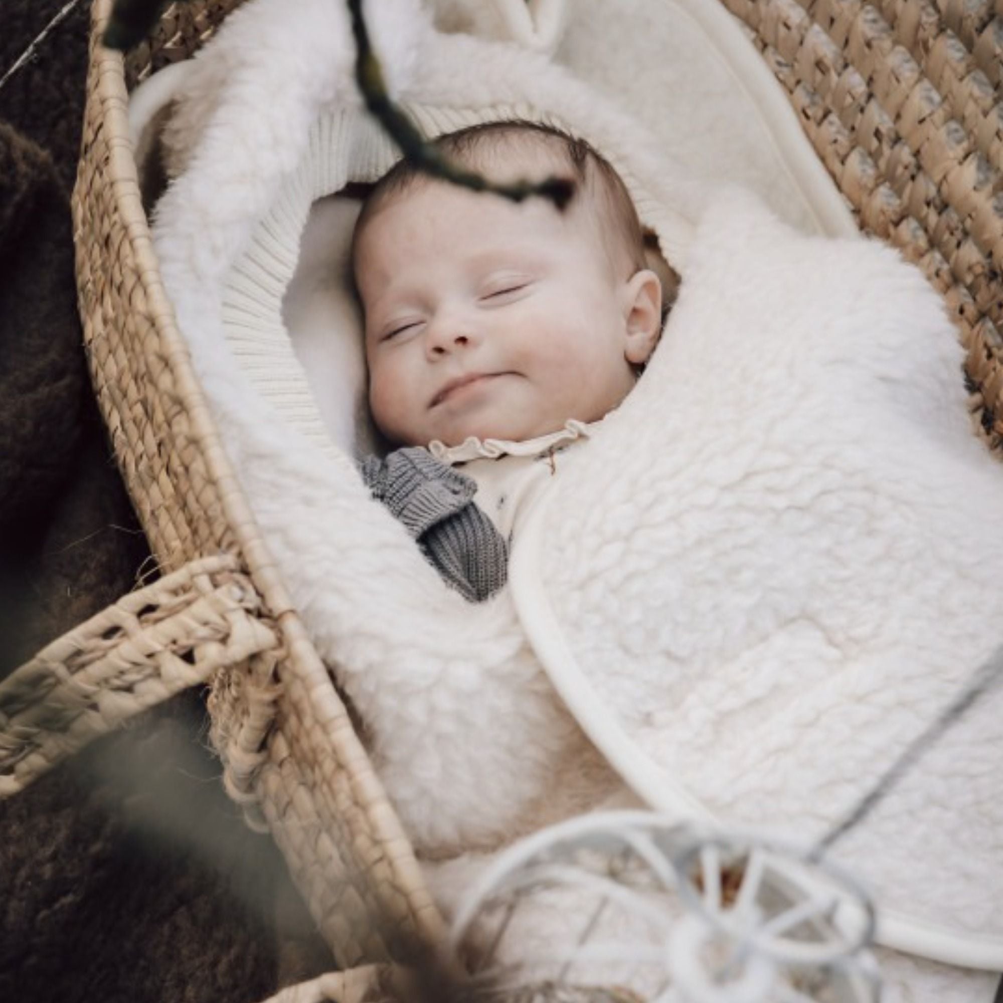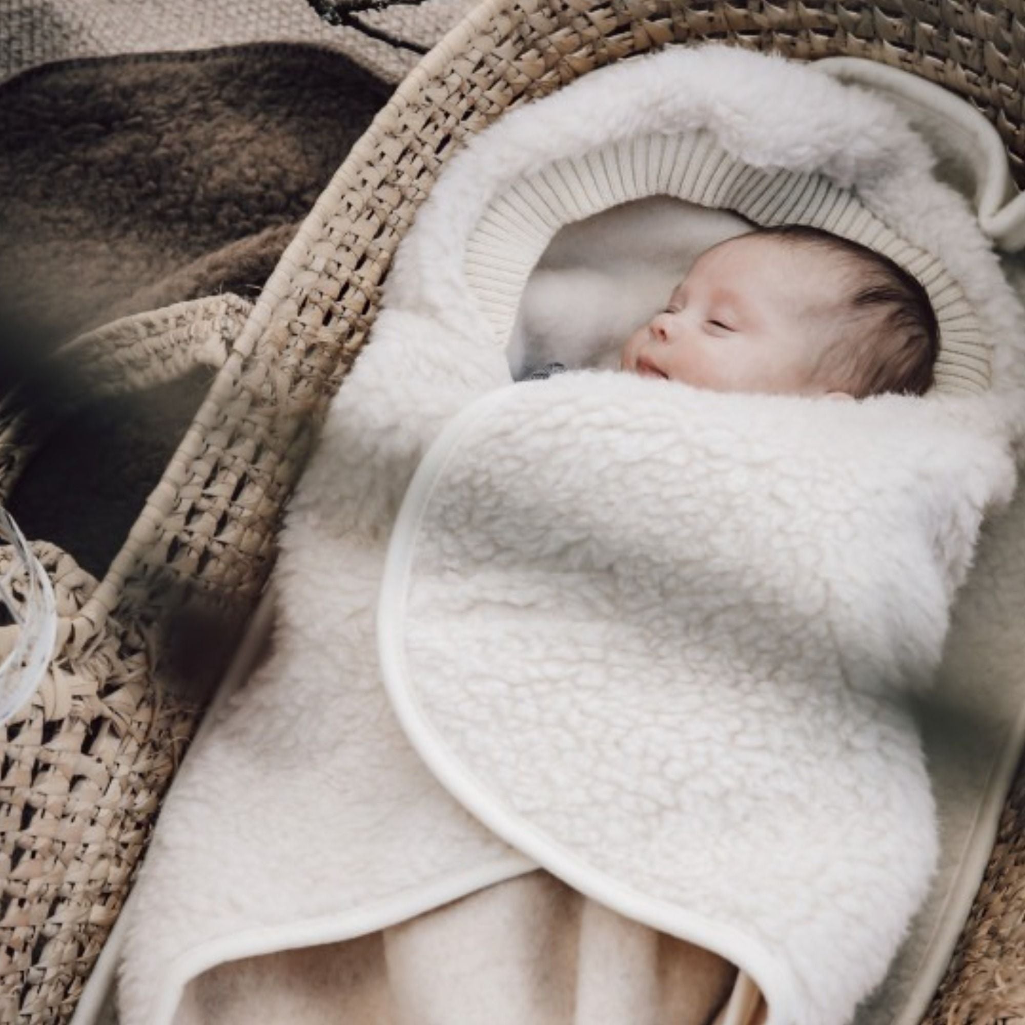 Die Wickeldecke besteht aus Wolle, wodurch die Decke schön warm, aber auch atmungsaktiv ist. So wird es deinem Kleinen nie zu heiß. Die Wickeldecke ist perfekt für den Maxi-Cosi oder dem Kinderwagen. Auf der Rückseite der Wickeldecke befinden sich Löcher für die Autositzgurte. Die Seiten lassen sich mit Klettverschluss zusammen fügen.