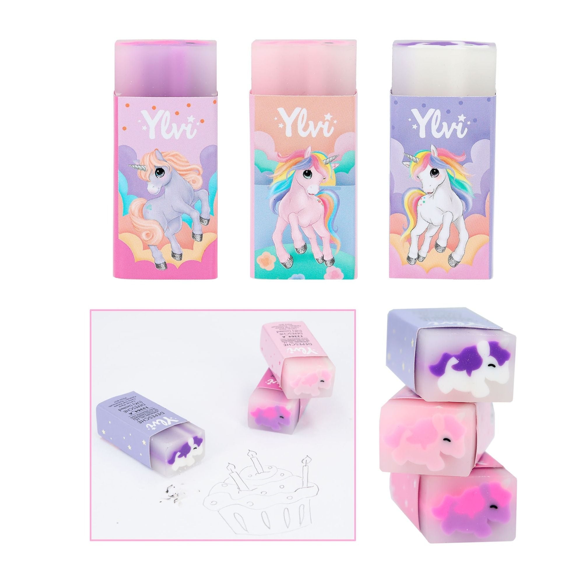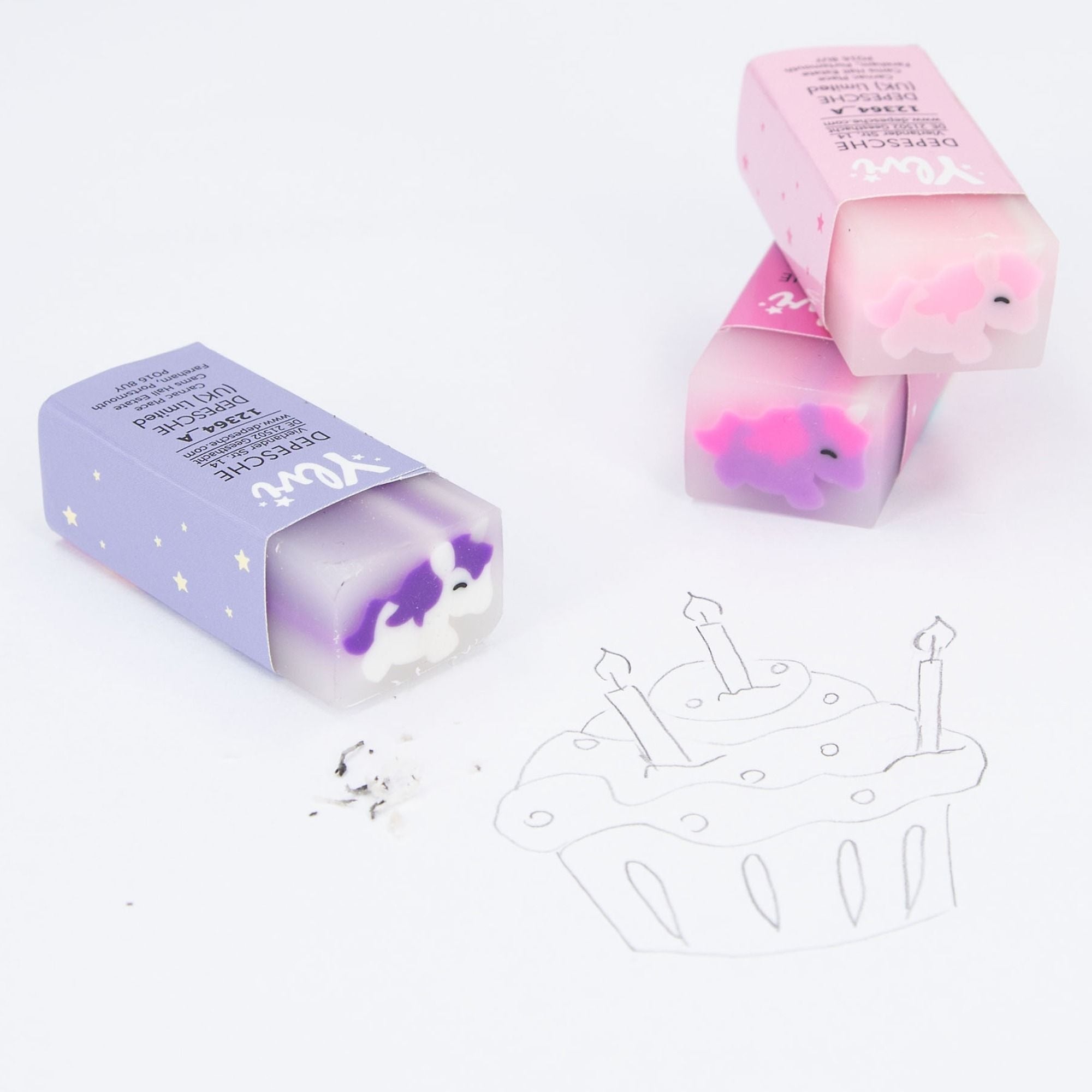 So süß geht Radieren: Die 3 Jelly Radierer von Ylvi sind außen transparent und haben innen ein niedliches Einhorn. Mit farblich passender, liebevoll gestalteter Banderole. In Folie verpackt.